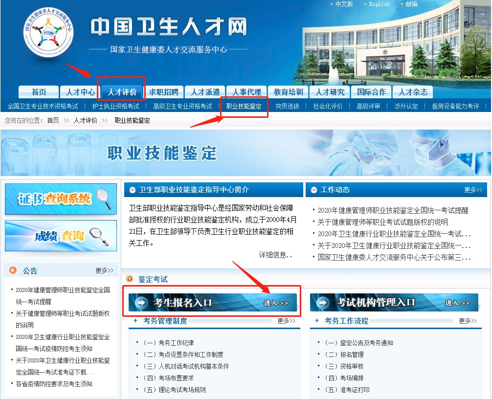 第一步:登录中国卫生人才网(https://www.21wecan.com/),在【人才评价】-【职业技能鉴定】-【考生报名入口】进入报名页面(目前该报名入口已关闭):