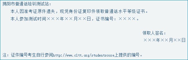 关于揭阳10月普通话测试考生等级证书发放的通知