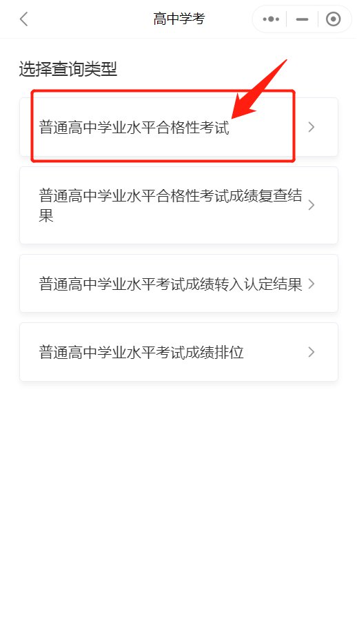 4.选择查询类型——普通高中学业水平合格性考试,输入考生号及密码即可查询。