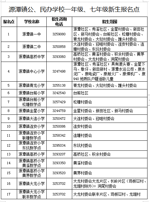 2022清城区源潭街公办学校学区划分 2020年清城区公办中小学学区划分