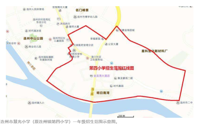 连州市慧光小学(原连州镇第四小学)一年级招生范围示意图。