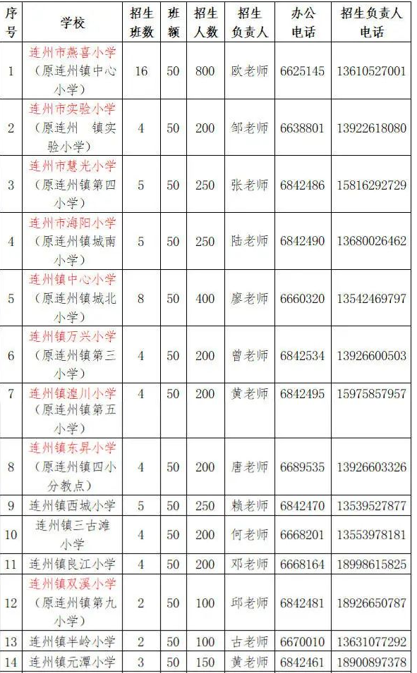 (八)其他条件的适龄儿童报读,建议不要报读连州市燕喜小学(原连州镇中心小学)、连州市实验小学(原连州镇实验小学)、连州镇万兴小学(原连州镇第三小学)、连州市慧光小学(原连州镇第四小学),因以上学校按往年情况符合学区条件的已招满。