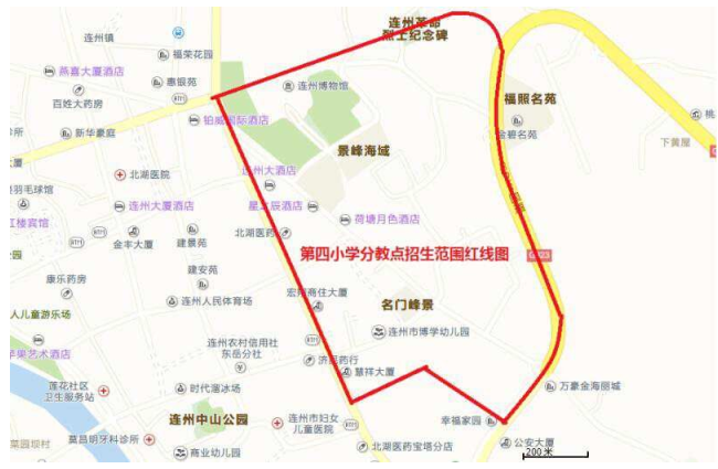 连州镇中心小学(原连州镇城北小学)一年级招生部分范围示意图。
