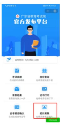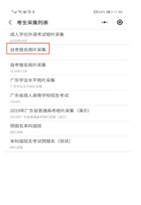 (1)在广东省教育考试院官方小程序上选择报名相片采集,选择考生端进入。