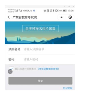 (2)在考试列表中找到自考报名相片采集,输入预报名号与预报名时设置的密码登录