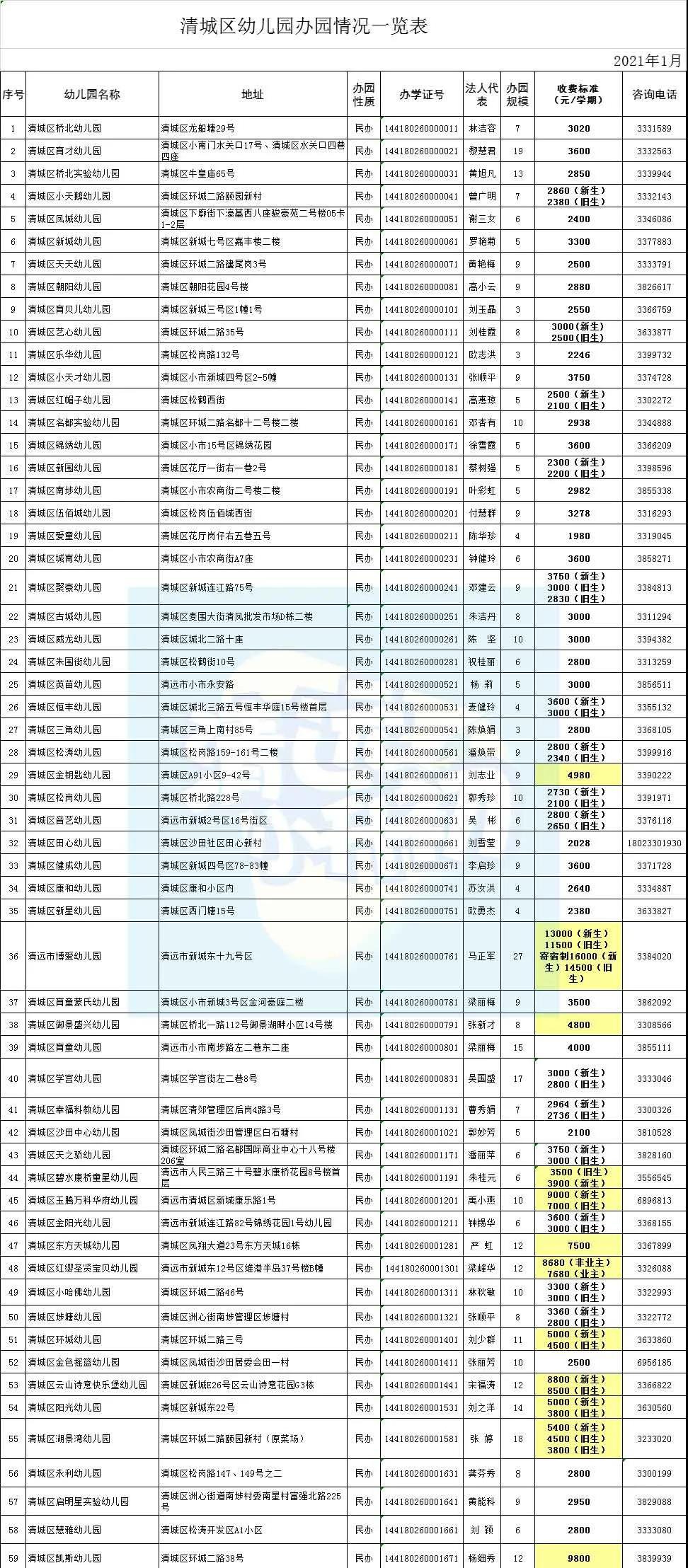 参考2021清远民办幼儿园价格