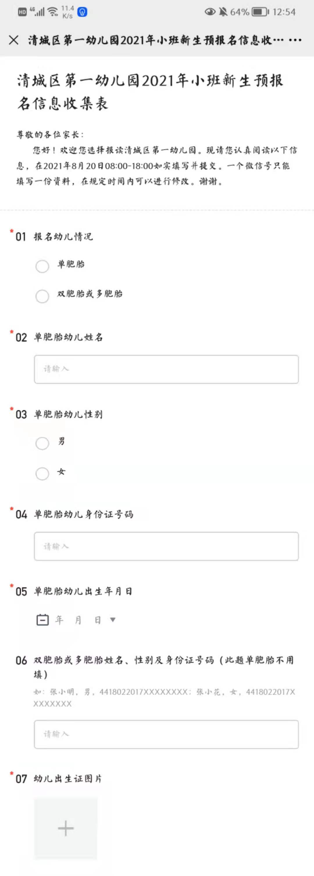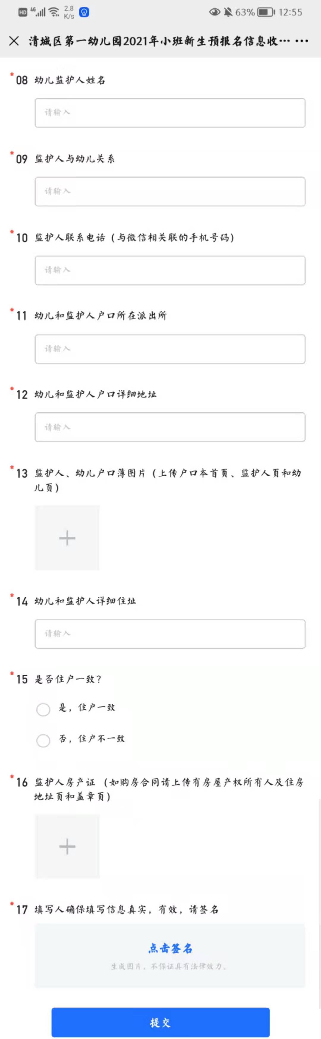 扫描幼儿园《招生公告》中的二维码进入预报名页面。