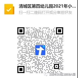 家长打开微信扫一扫二维码,进入《清城区第四幼儿园2021年小班新生预报名信息收集表》。温馨提示:家长只能选择一所符合条件的公办幼儿园进行报名,如有多报,一经核实,将取消报名资格。