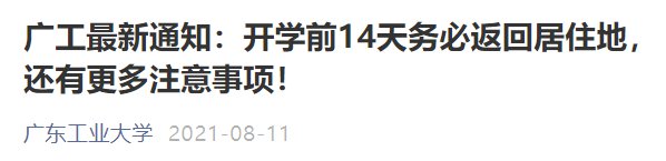 2021广东工业大学秋季返校通知 广东工业大学返校时间