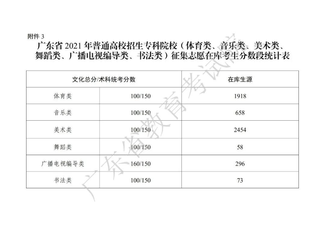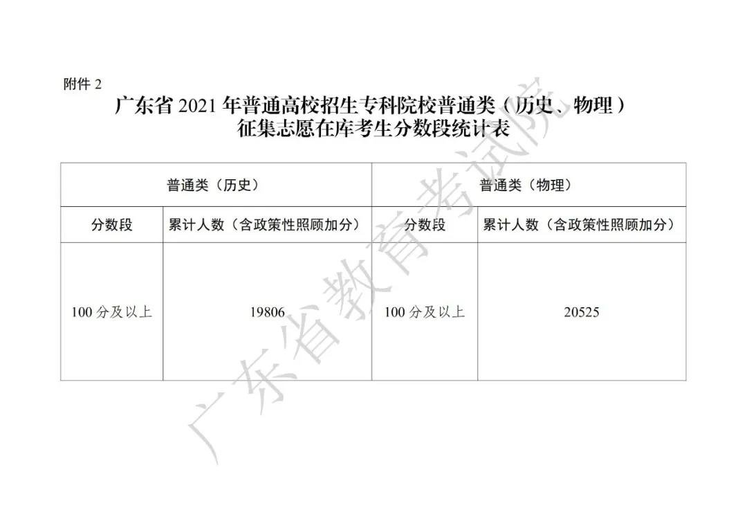 广东省2021年专科批次院校第二次征集志愿分数条件