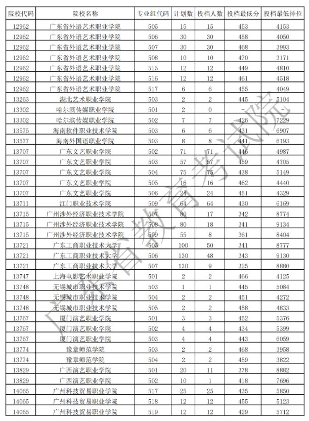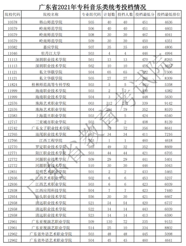 广东2021年专科音乐类统考投档情况 广东2021年专科音乐类统考投档情况如何