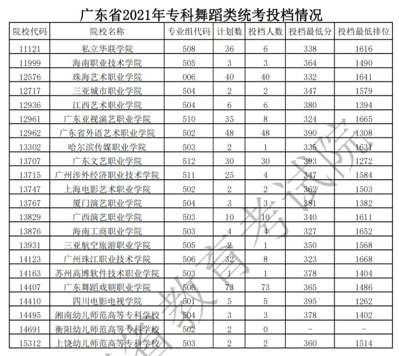 广东2021专科舞蹈类统考投档情况(广东2021专科舞蹈类统考投档情况表)