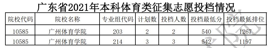 注:可点击pdf文件进行查看(广东省2021年本科体育类征集志愿投档情况.pdf)