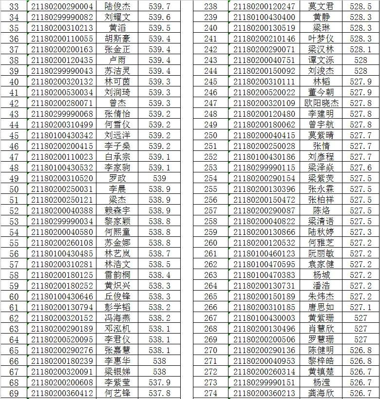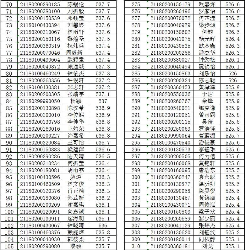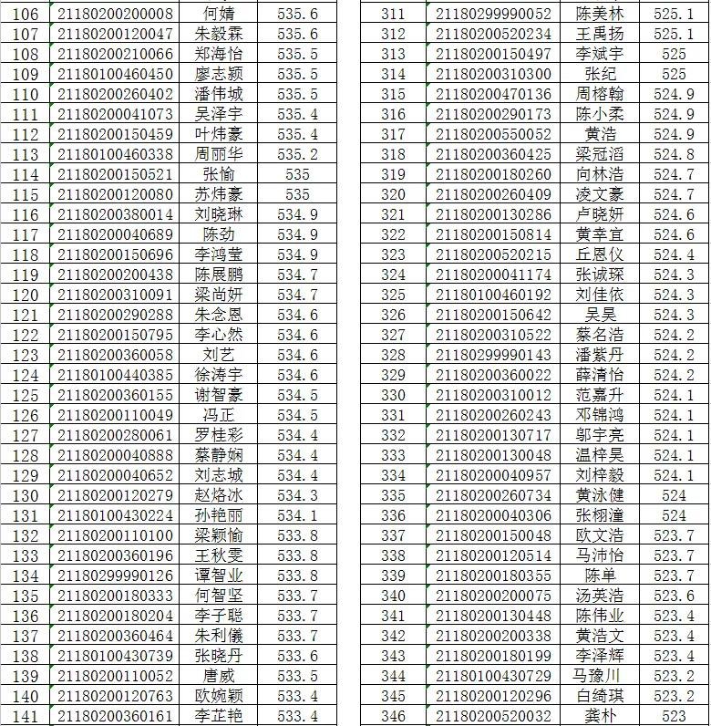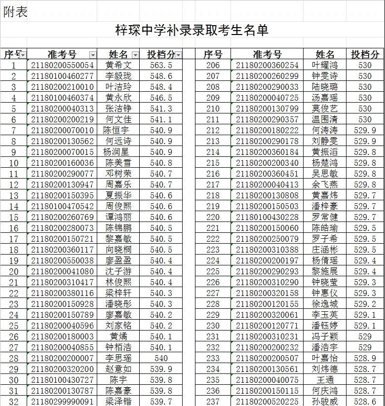 附表:梓琛中学补录录取考生名单
