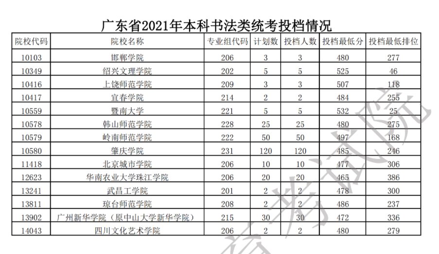 广东2021年本科书法类统考投档情况查看:(点击进入)