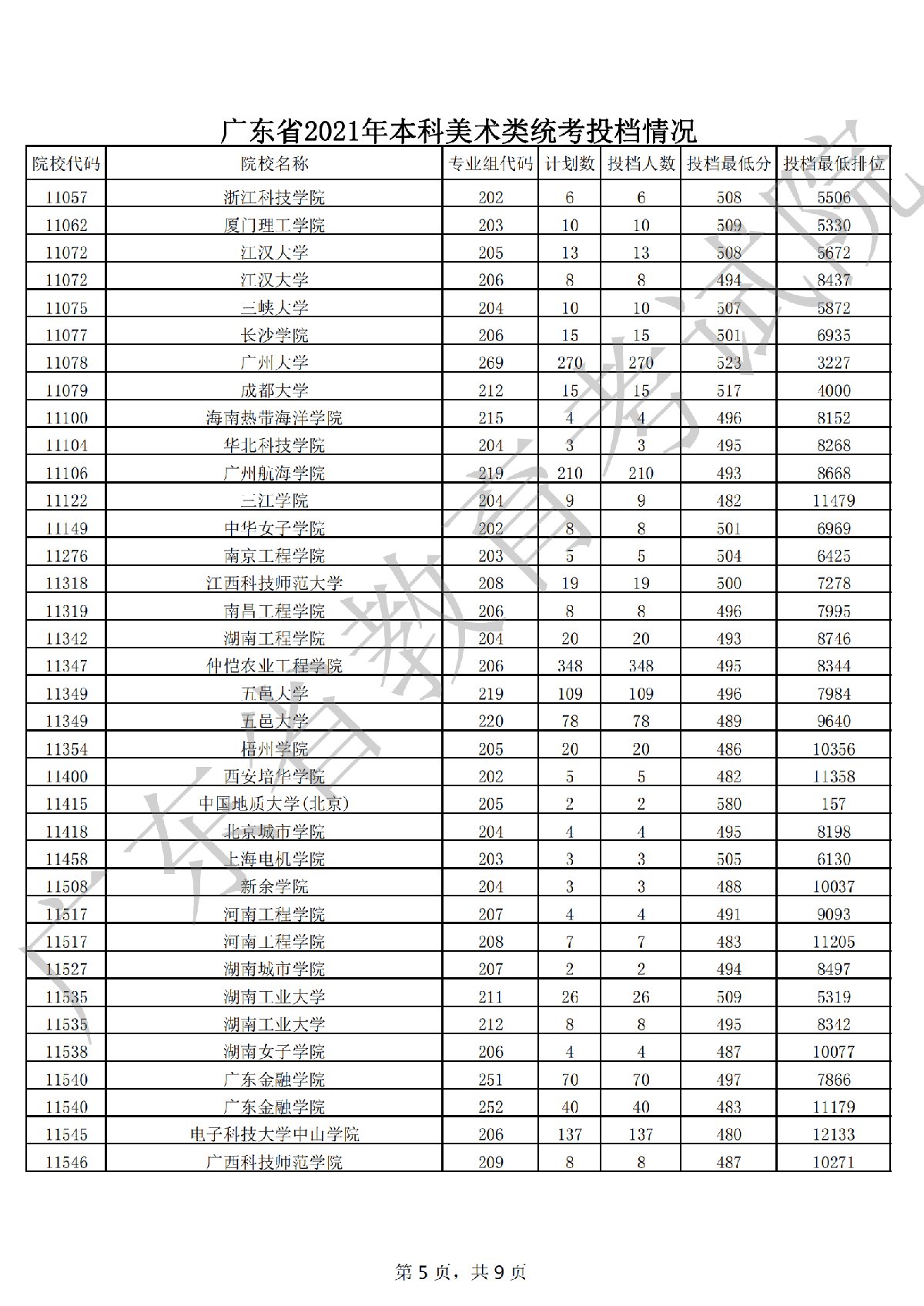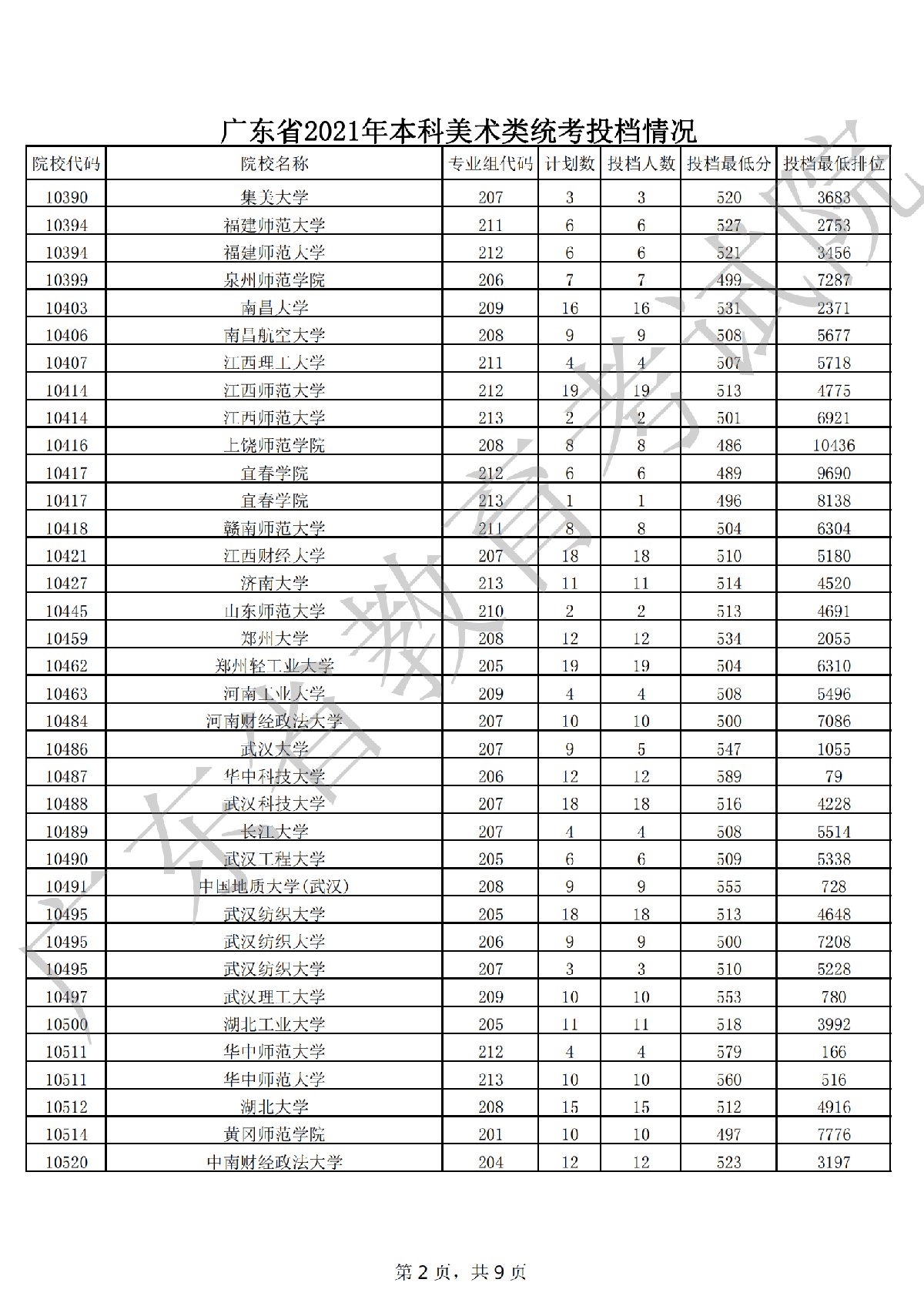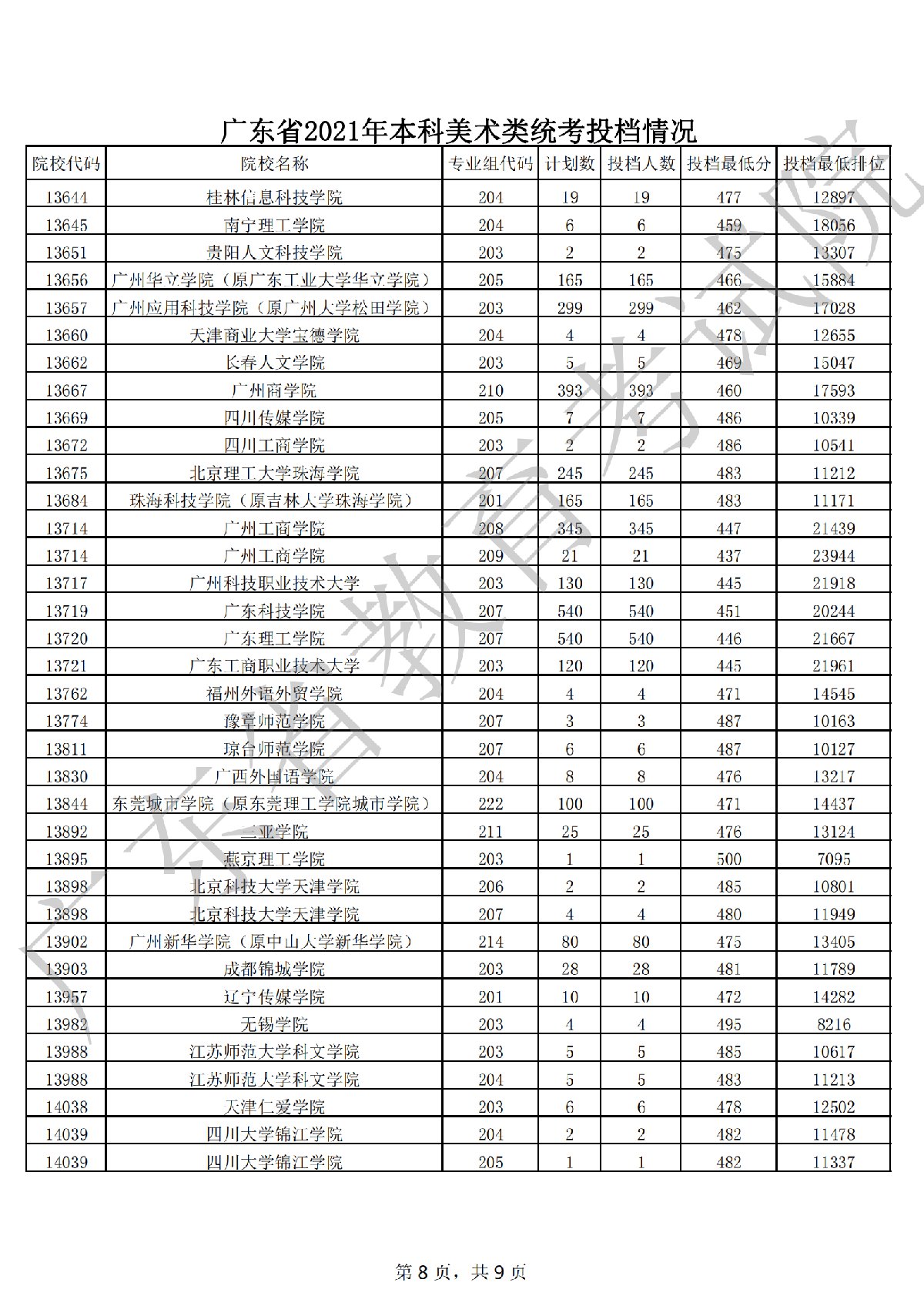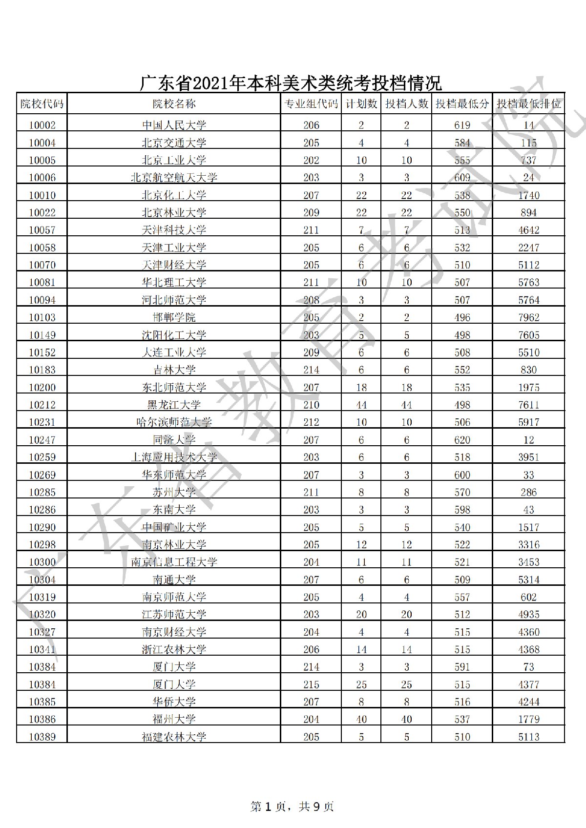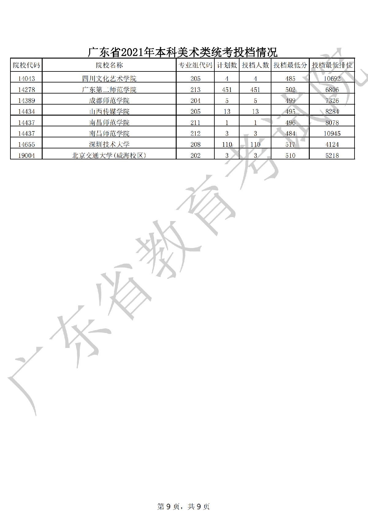 广东2021年本科美术类统考投档情况查看:(点击进入)