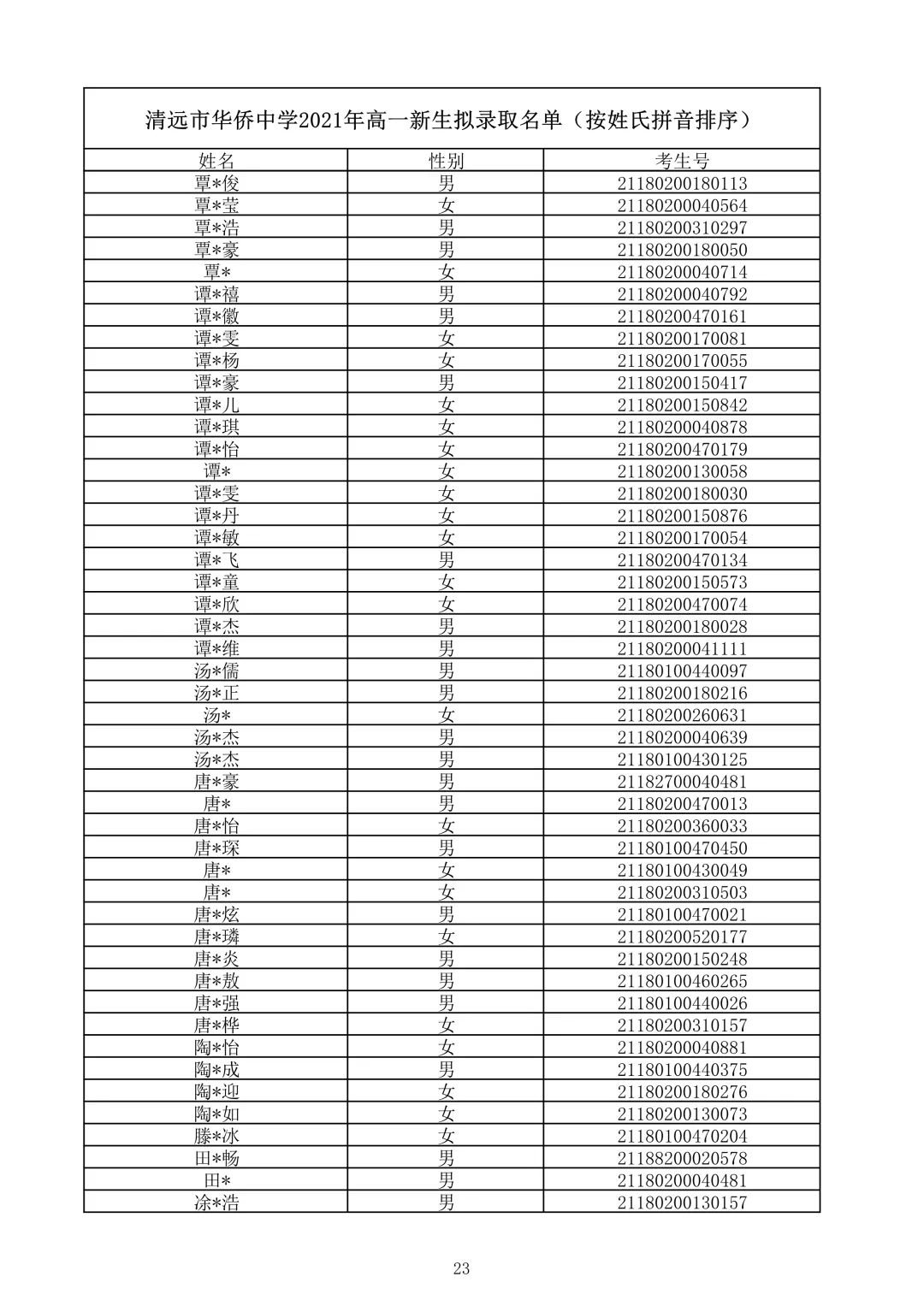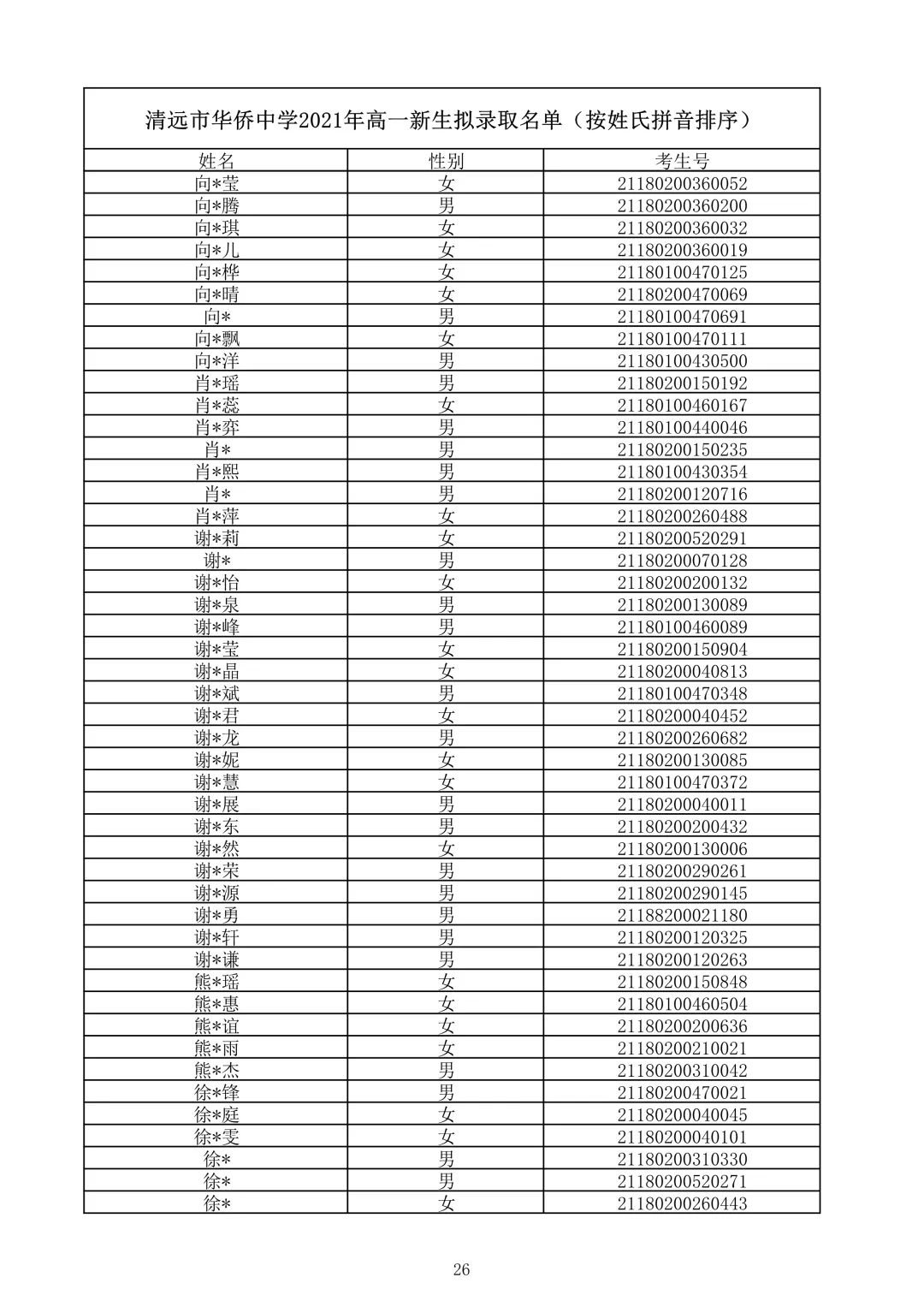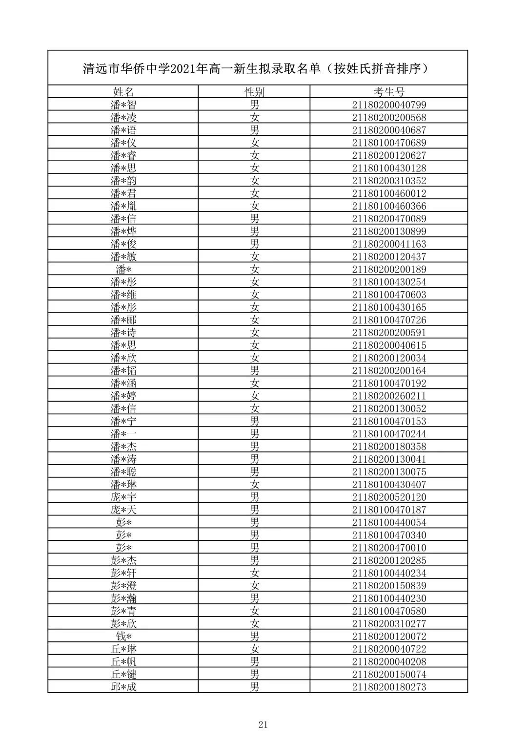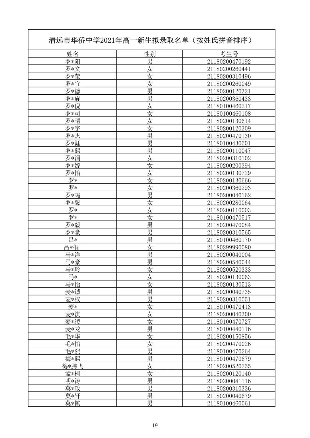 清远市华侨中学2021录取查询 清远市华侨中学2021招生