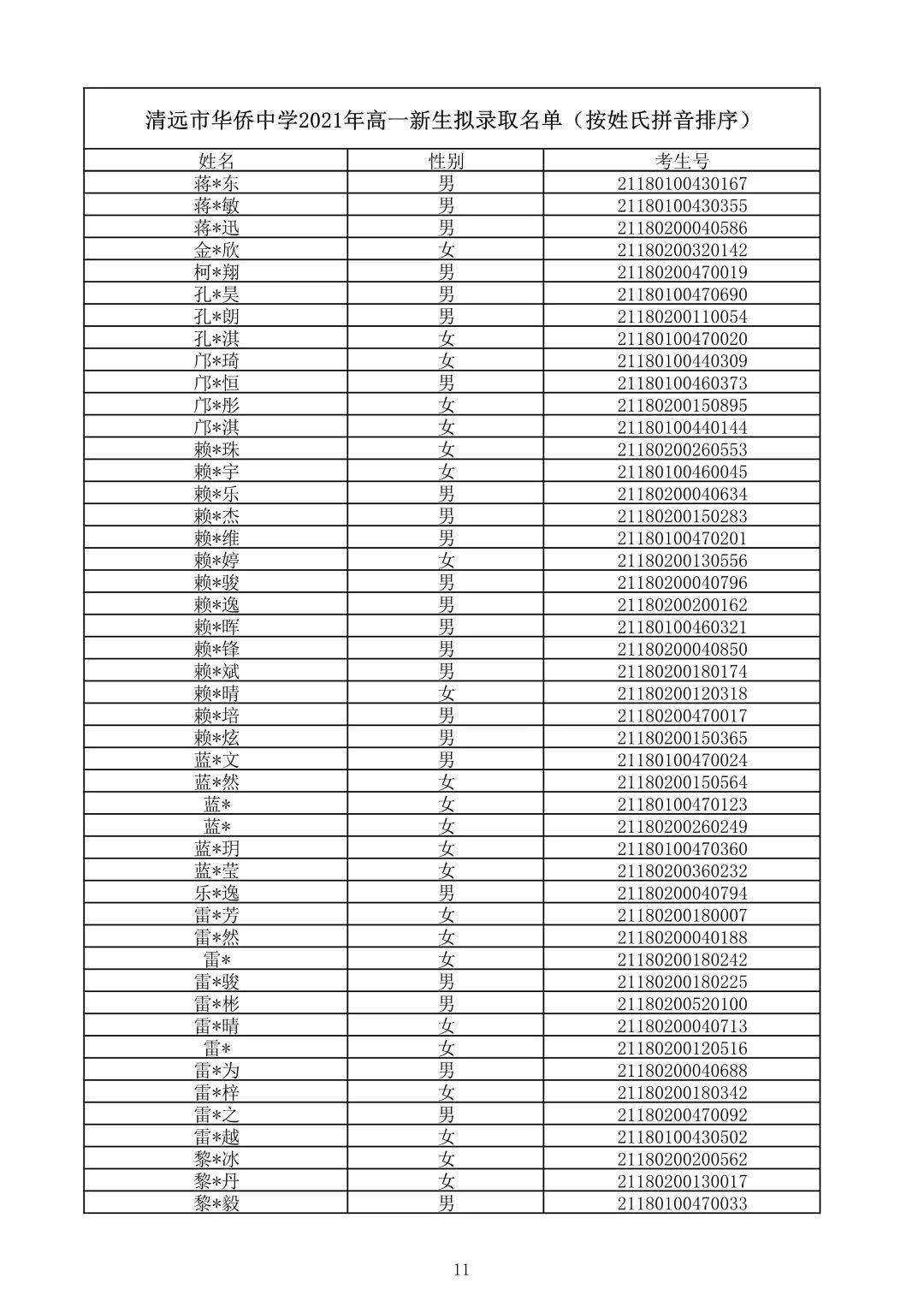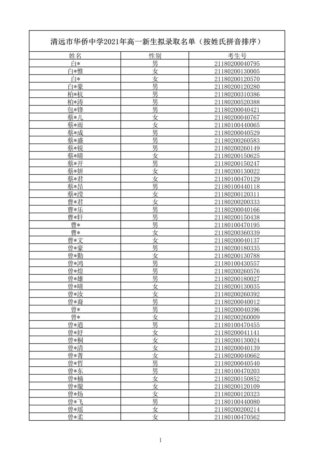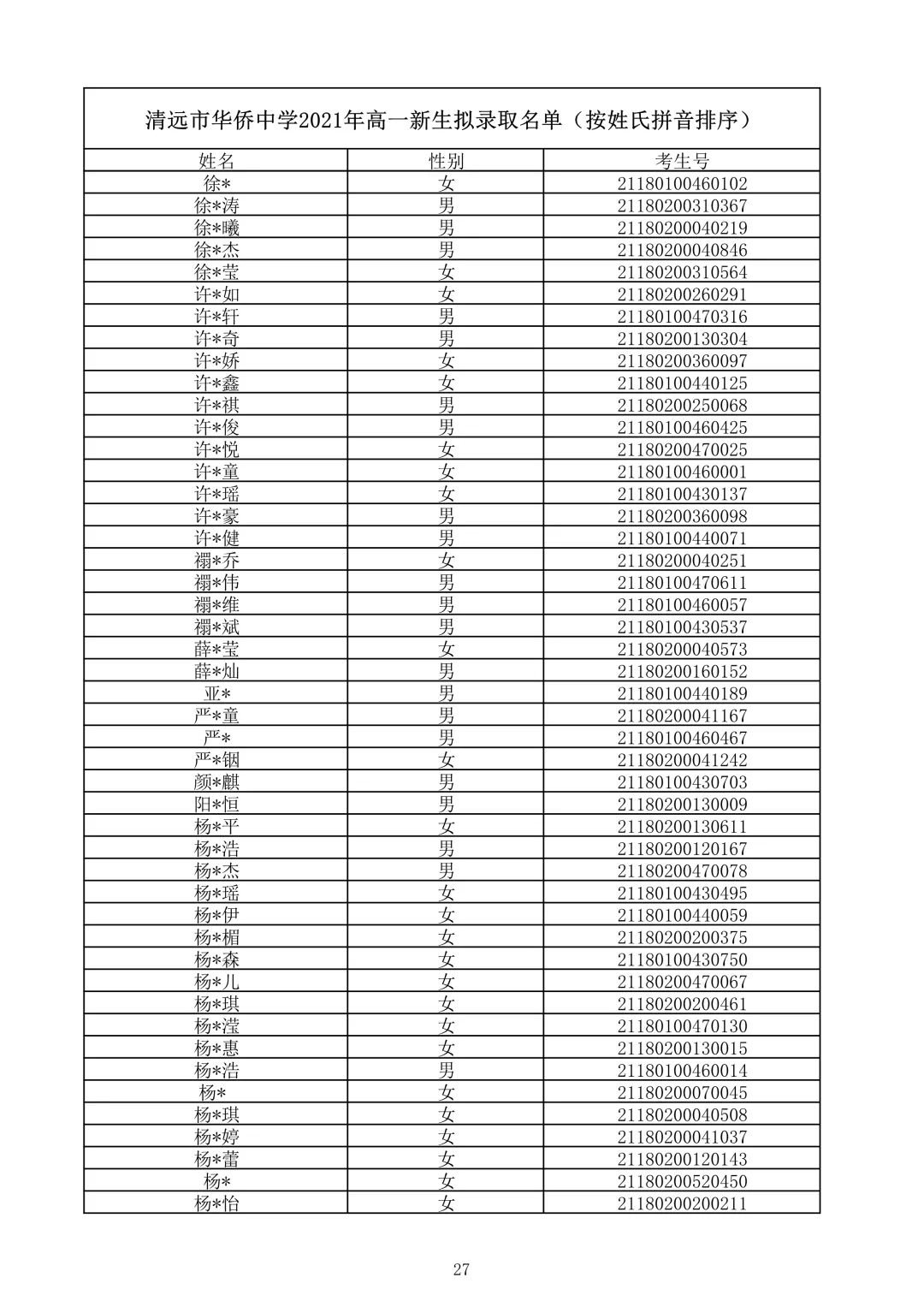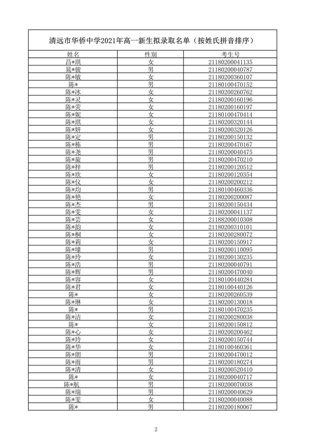 清远市华侨中学2021录取查询 清远市华侨中学2021招生