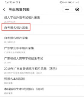 (1)在广东省教育考试院官方小程序上选择报名相片采集,选择考生端进入。