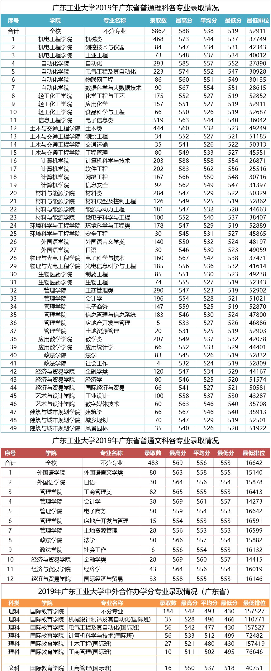 广东省2019年录取统计