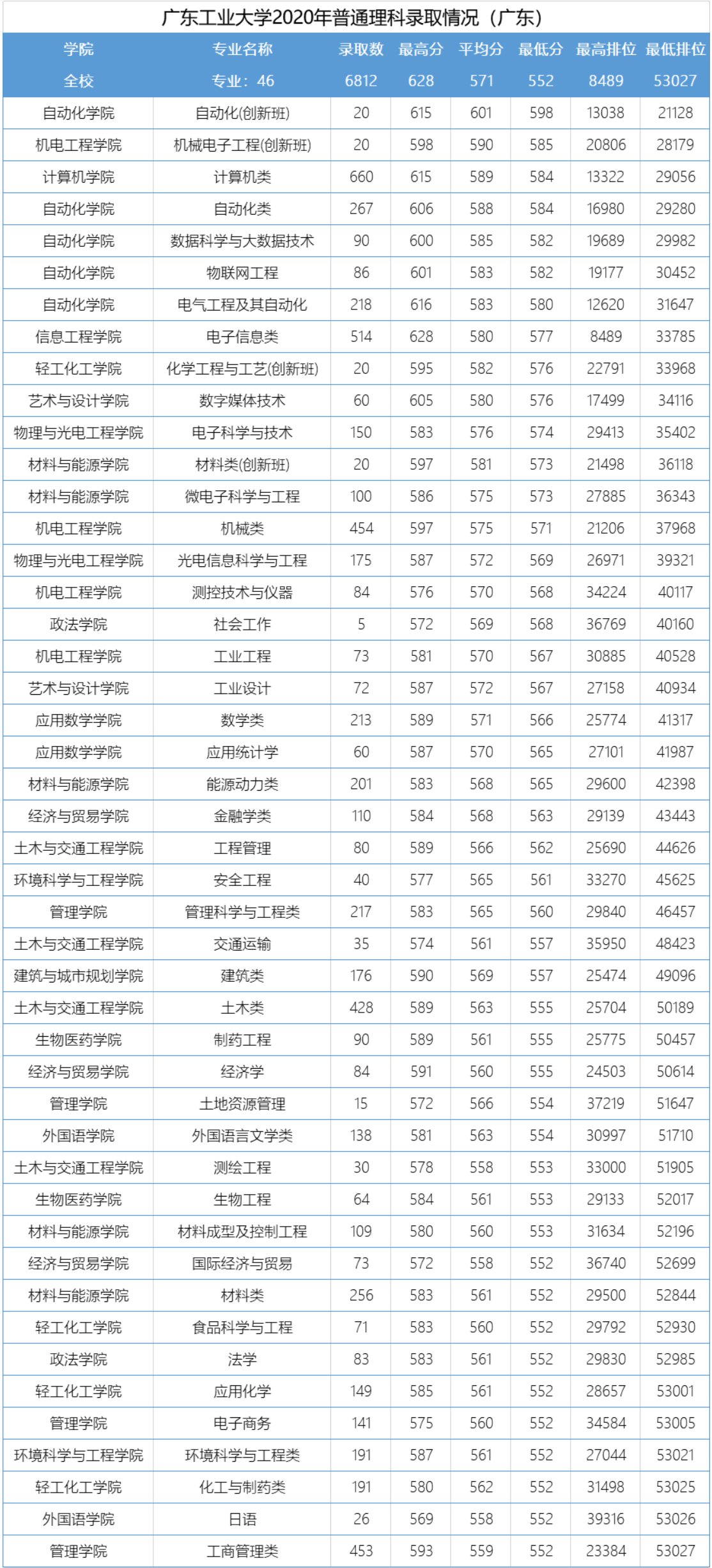 广东工业大学广东省各专业录取情况 广东工业大学广东省各专业录取情况如何