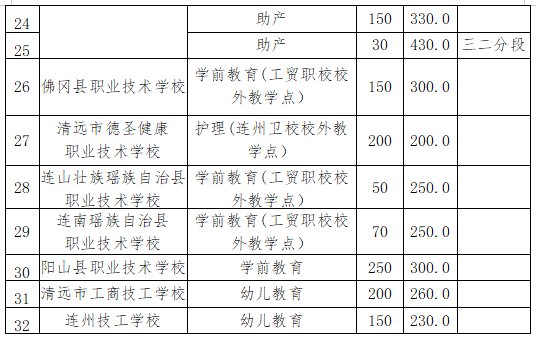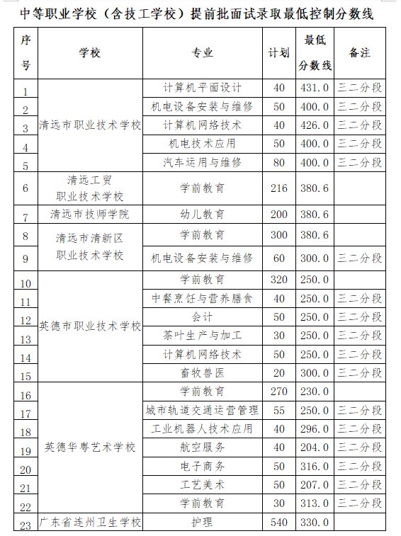 广东茂名幼儿师范专科学校:英德市635.5分,连州市621.7分。