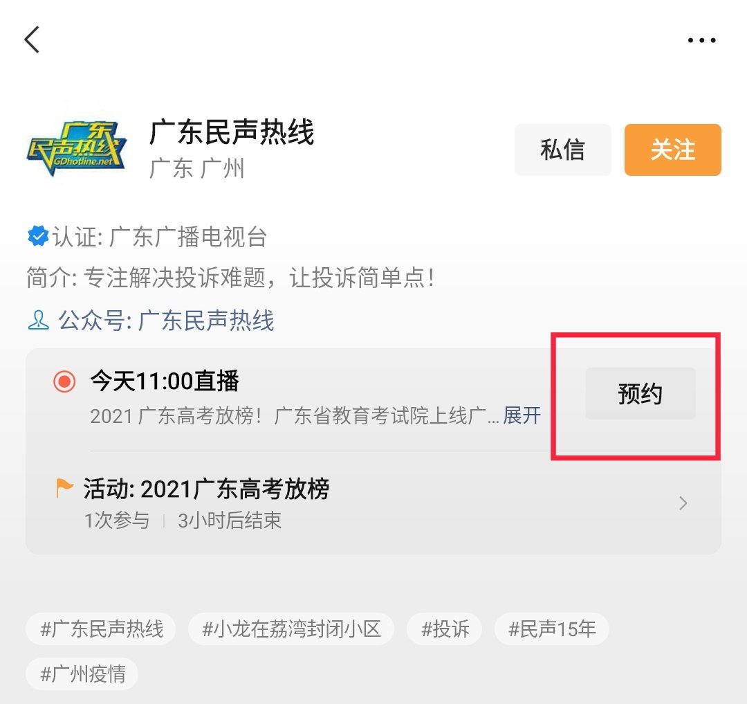 第二步:在“广东民声热线”视频号里点击预约或者在直播届时直接观看即可,如下图所示。