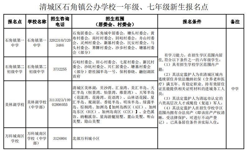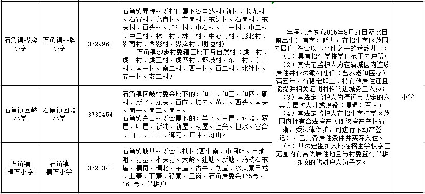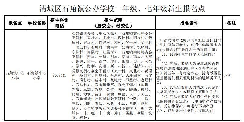 2021清城区石角镇公民办学校学区划区 清城区石角镇中心学校