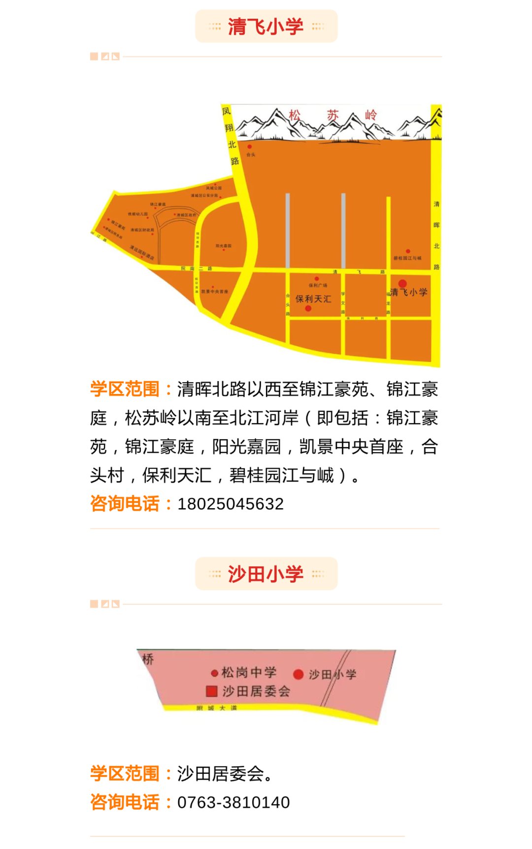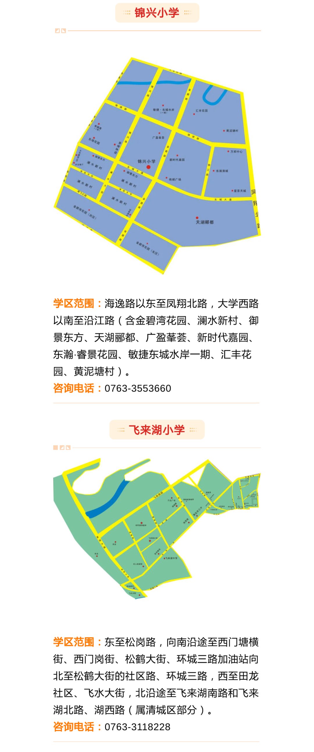 由于今年新增了清飞小学、新城小学,还有个别学校扩建,部分学校学区进行了适当的调整。