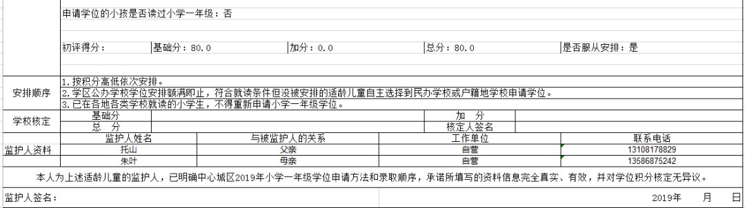 申请公办学位的,家长须打印该表格一式两份,并带上此表及其他证件原件到登记学校进行现场审核。