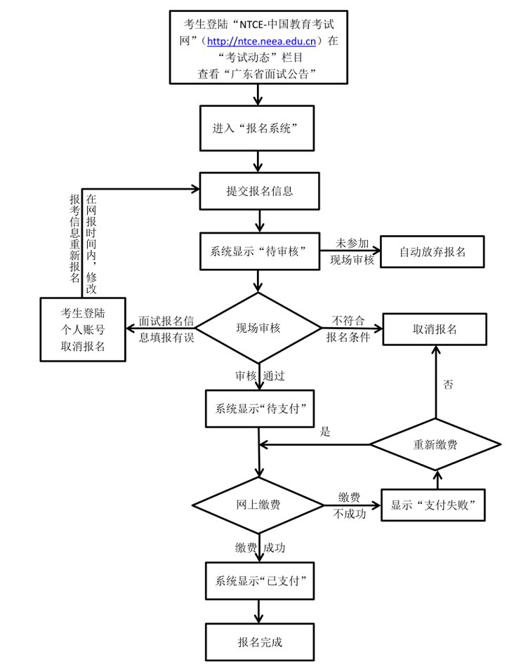 考生网上报名成功后,须携带相关的材料到规定时间和地点,进行现场审核,审核通过后,完成网上缴费,方可报名成功。