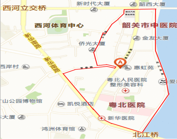 户籍与房产在:武江桥底(武江南路1号)至北江桥底(武江南路148号)南侧往西;北江桥底(武江南路148号)南侧经新华南路段至亨泰路口(现江林酒楼);沿亨泰路(现江林酒楼)至幸福广场;五祖路99-3至五祖路57-1;亨泰路(惠民南路118-6)经五祖路(亨泰花园第一小园)至工业东路路口(工业东路1-1号)往东;沿工业东路(工业东路1-1号)至武江桥底(武江南路1号)往南。