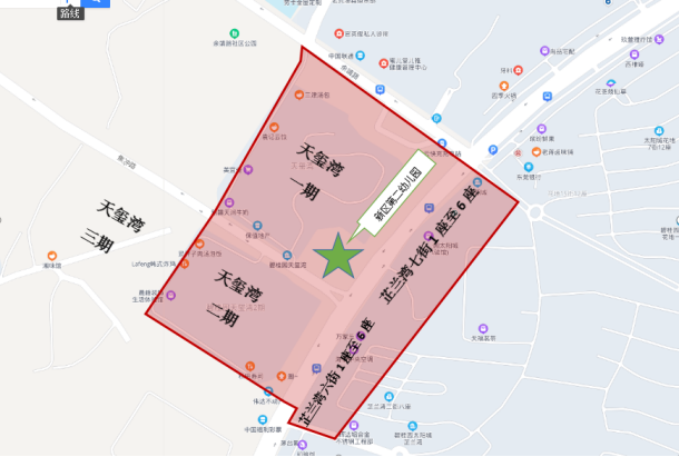 户籍和房产均在地段范围内的适龄幼儿:天玺湾一期→天玺湾二期→芷兰湾七街1座至6座→芷兰湾六街1座至6座