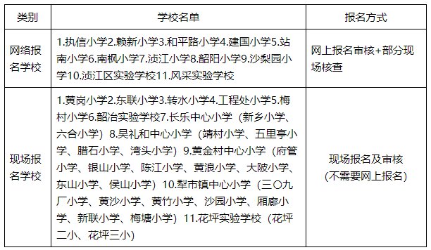 3.部分城区小学、镇中心小学及镇属小学(学校名单见附表)不需要网上报名,这些学校的小学一年级招生入学工作方案需向浈江区教育局备案,取得同意后向社会公布并实施。请关注各相关学校通知,到学校现场报名并进行资料审核。