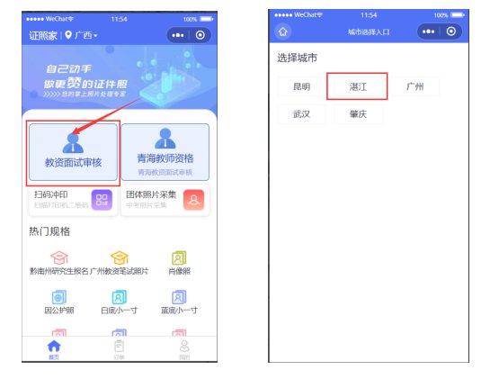 2.在证照家首页点击“教资面试审核”,选择“湛江”