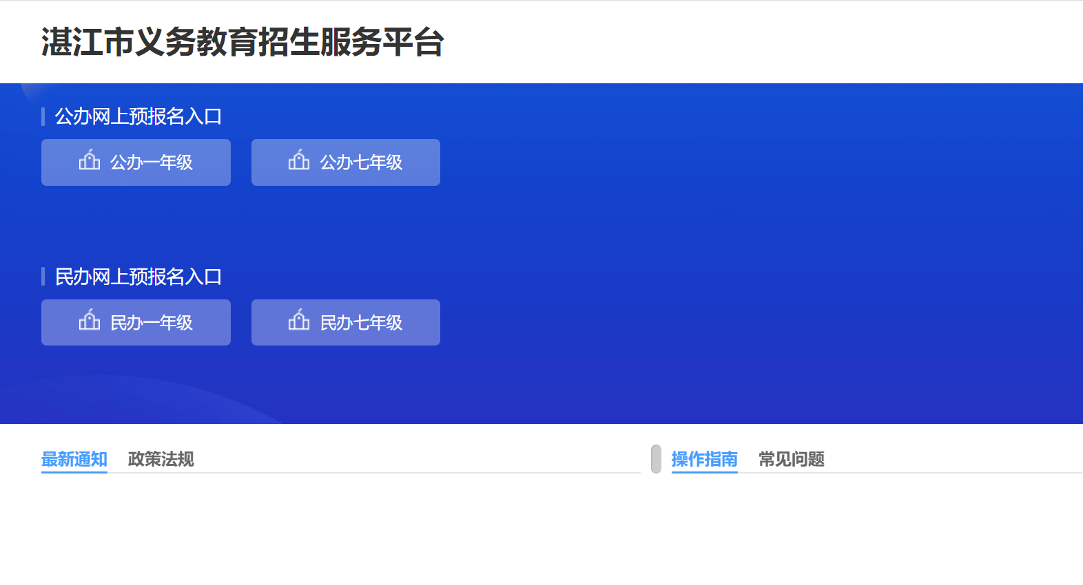 预报名入口:公办小一;公办初一;民办小一;民办初一