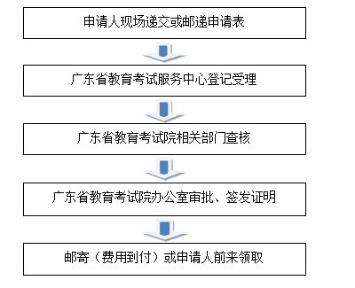 ➊可登陆【广东教育考试服务网】(www.eesc.com.cn)“服务之窗”栏目下载申请表,按要求填写表格并附上身份证复印件,邮寄至:广东省广州市天河区中山大道西69号广东省教育考试院来访接待室蒋老师收(邮编510631)。