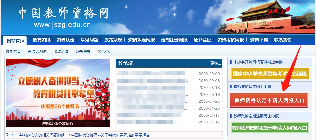 申请人于10月9日至10月16日,登录【中国教师资格网】(网址:https://www.jszg.edu.cn),选择“教师资格认定申请人网报入口”,用本人注册账号和密码登录,选择“教师资格认定”模块进行报名,报名前请认真阅读“须知”。