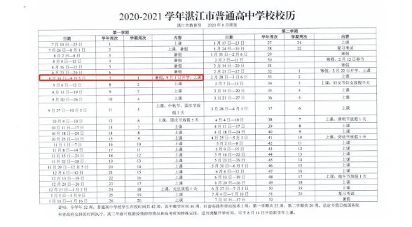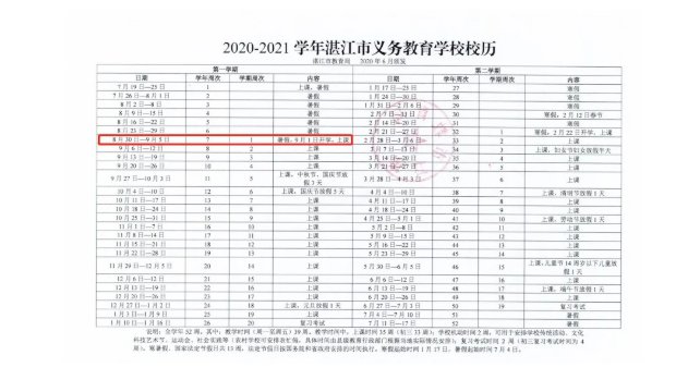 湛江市2020-2021学年中小学校历