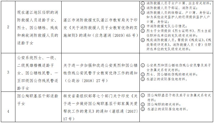 2.现在湛江地区任职的消防救援人员适龄子女、烈士、因公牺牲、残疾和病故消防救援人员的适龄子女