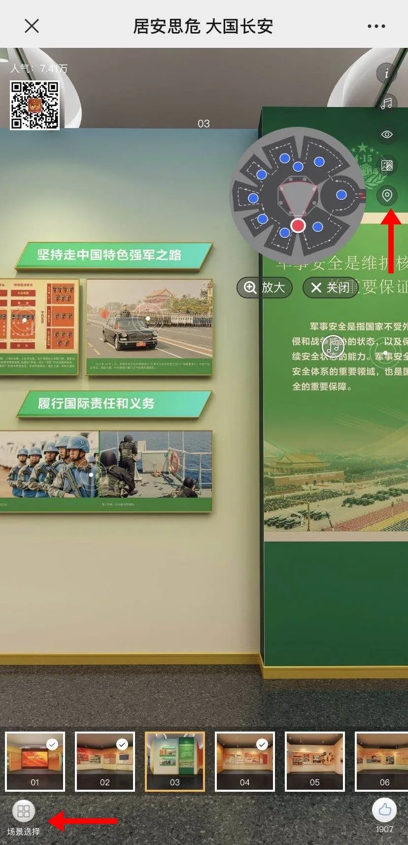 ◈或者点击左下角“场景选择”,也可以在10个展厅中进行切换。