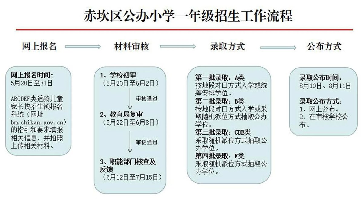 ABCDEF类适龄儿童家长可按照招生预报名系统:http://m.zhanjiang.bendibao.com/edu/bm.chikan.gov.cn 的指引和要求填报相关信息,并拍照上传相关材料。