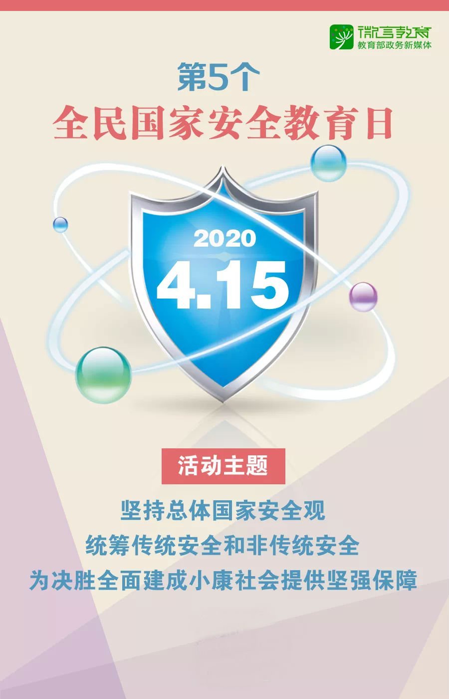 日前,教育部发布《关于组织开展2020年全民国家安全教育日宣传教育活动的通知》,要求各地各校要结合疫情防控形势和学校工作实际,认真筹划、深入组织开展一次有意义、有特色、有实效的宣传教育活动。