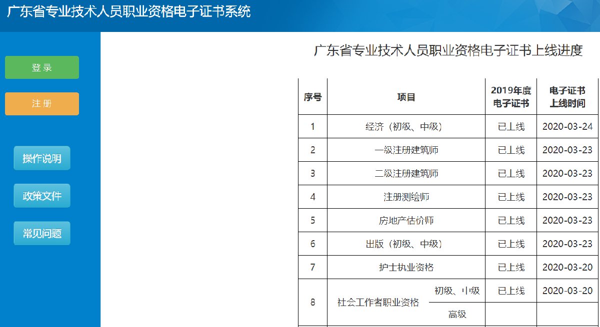 领取平台:广东省专业技术人员职业资格电子证书系统