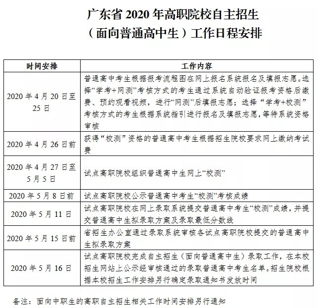广东省2020年高职院校自主招生(面向普通高中生)工作日程安排: