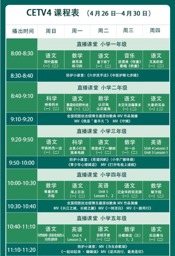 CETV4同上一堂课完整课程表(cetv12020同上一堂课)