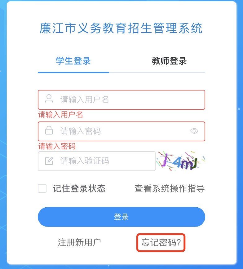 廉江市义务教育招生管理系统如何修改密码?