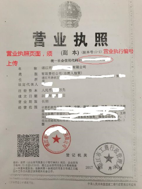 3、经营积分上传:营业执照副本(1页)、税收完税证明(N页)。