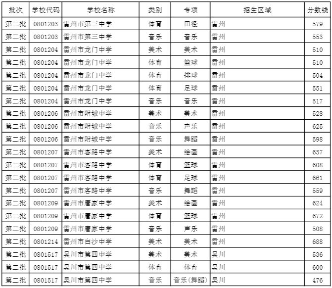 湛江市2019年高中特长生录取分数线 湛江市特长生中考录取分数线