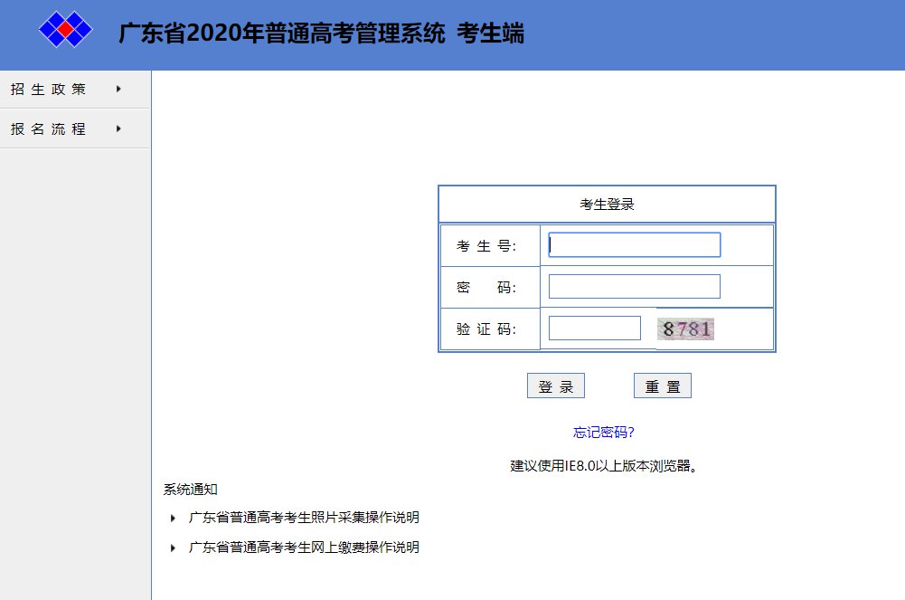 *忘记密码请携带证件至当地招办或报考点重置密码。